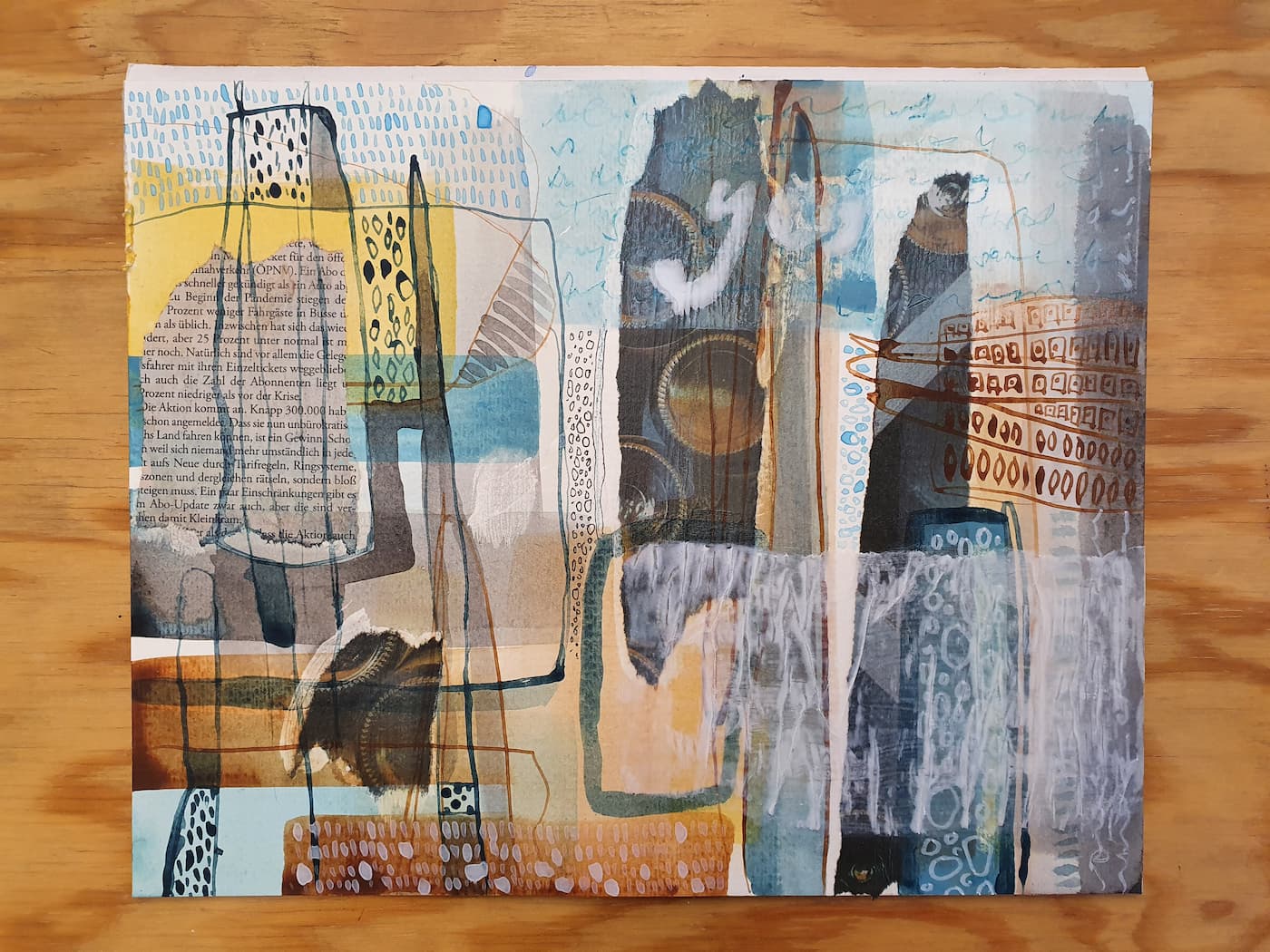 Der Tag ist noch nicht zu Ende. Weil ich noch ein angefangenes abstraktes Bild herumliegen habe, stelle ich auch dieses noch fertig: