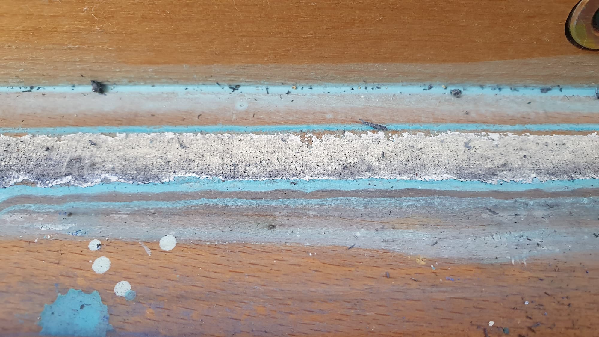 So sieht der untere Rand der Leinwand nach der Reparatur aus: