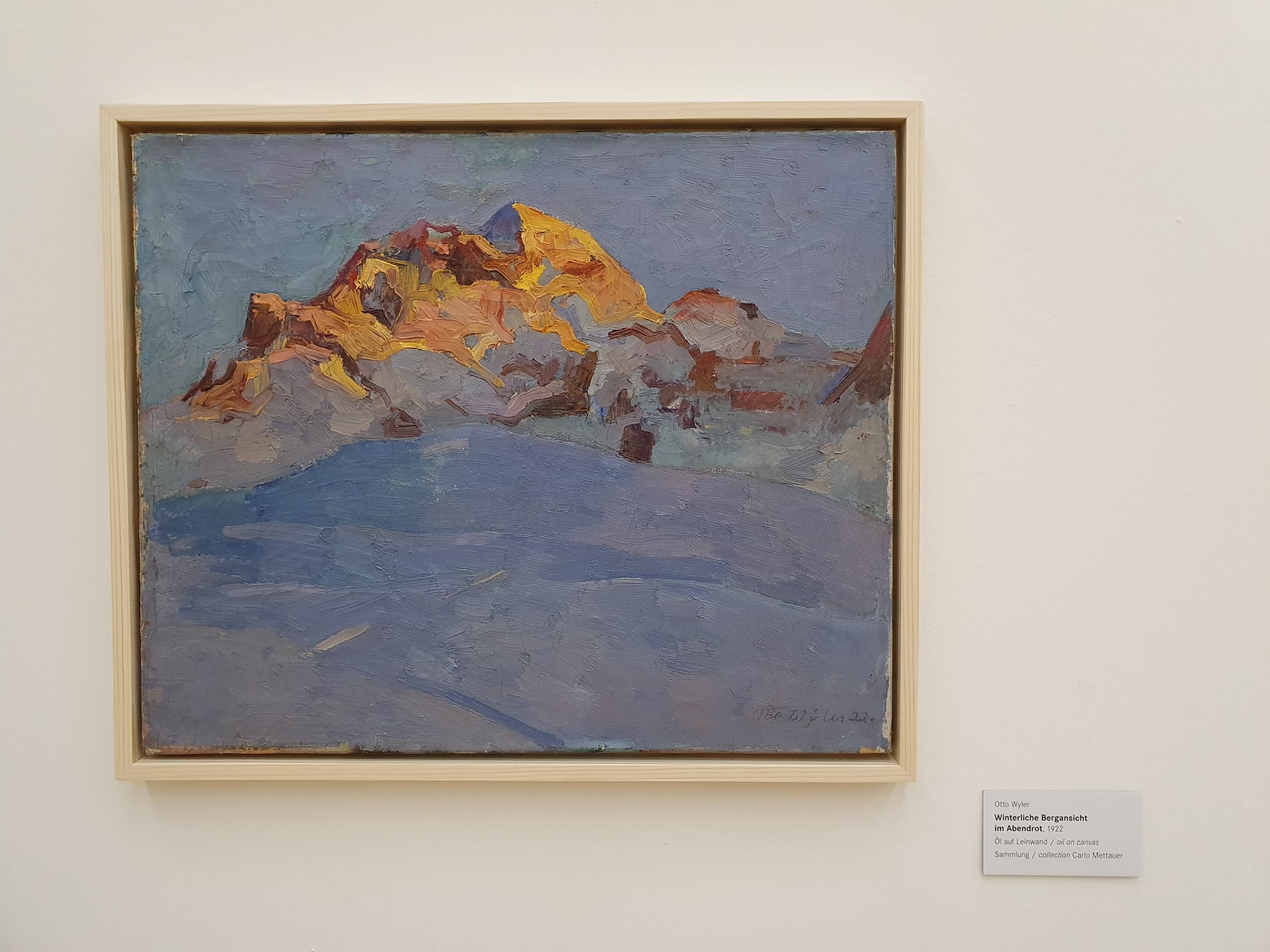 Das Museum Franz Gertsch zeigt parallel dazu meist auch einen anderen Künstler, diesmal Otto Wyler, dessen Bilder Leihgaben des Aargauer Kunsthauses sind. Auch hier sprachen mich vor allem die blau getönten Bilder an, wie hier die winterliche Bergansicht von 1922.