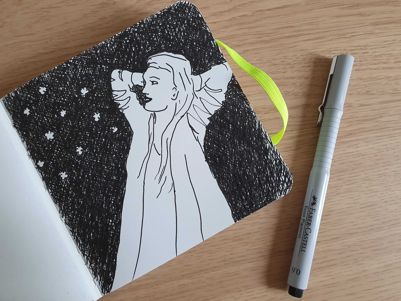 An zwei Ateliertagen kommen 15 Zeichnungen zusammen. Ich zeichne sie allesamt mit meinem neuen Faber-Castell Ecco Pigment 0.6 Fineliner. Es macht Spass, mit ihm zu zeichnen und zu kritzeln.