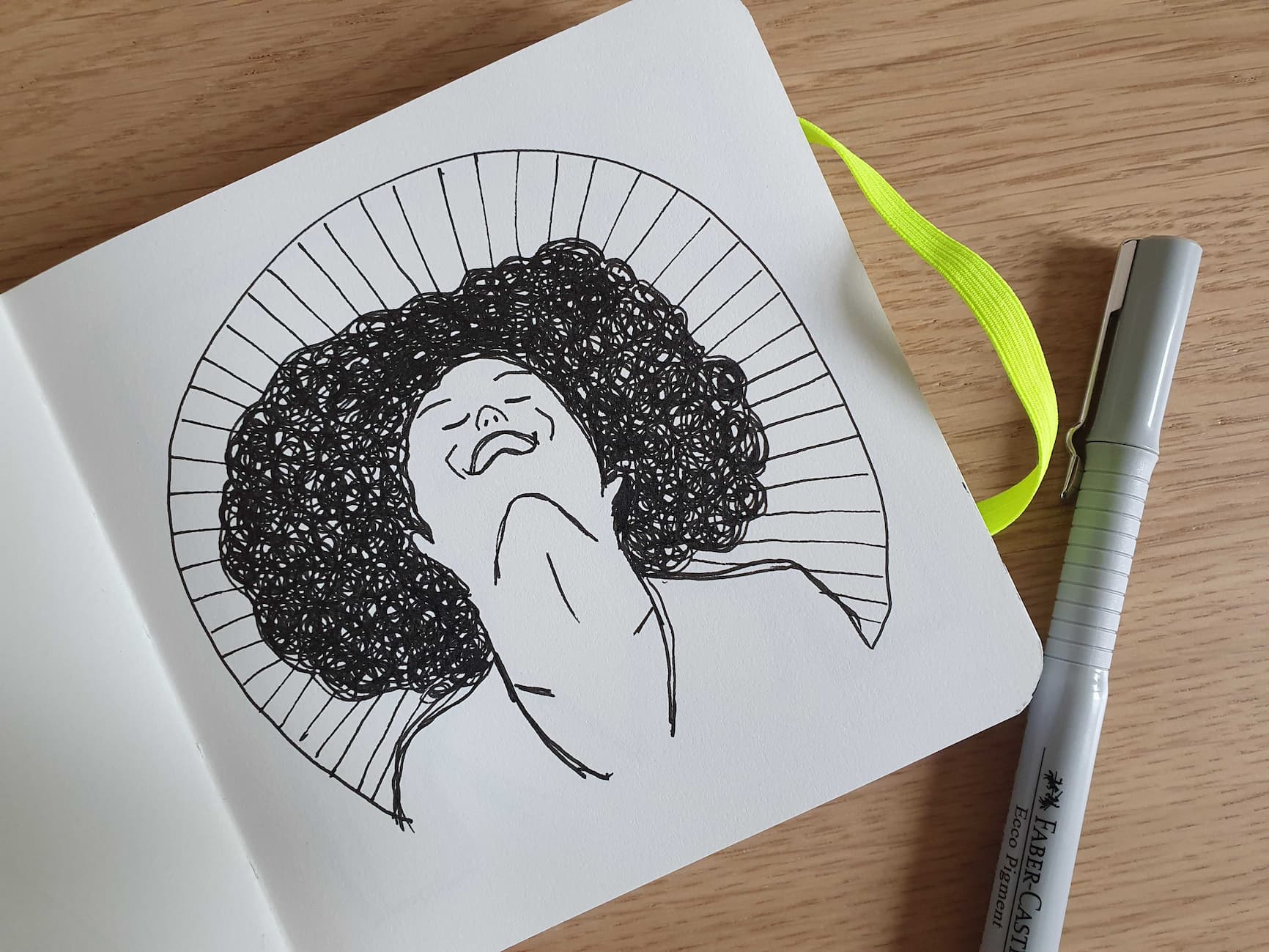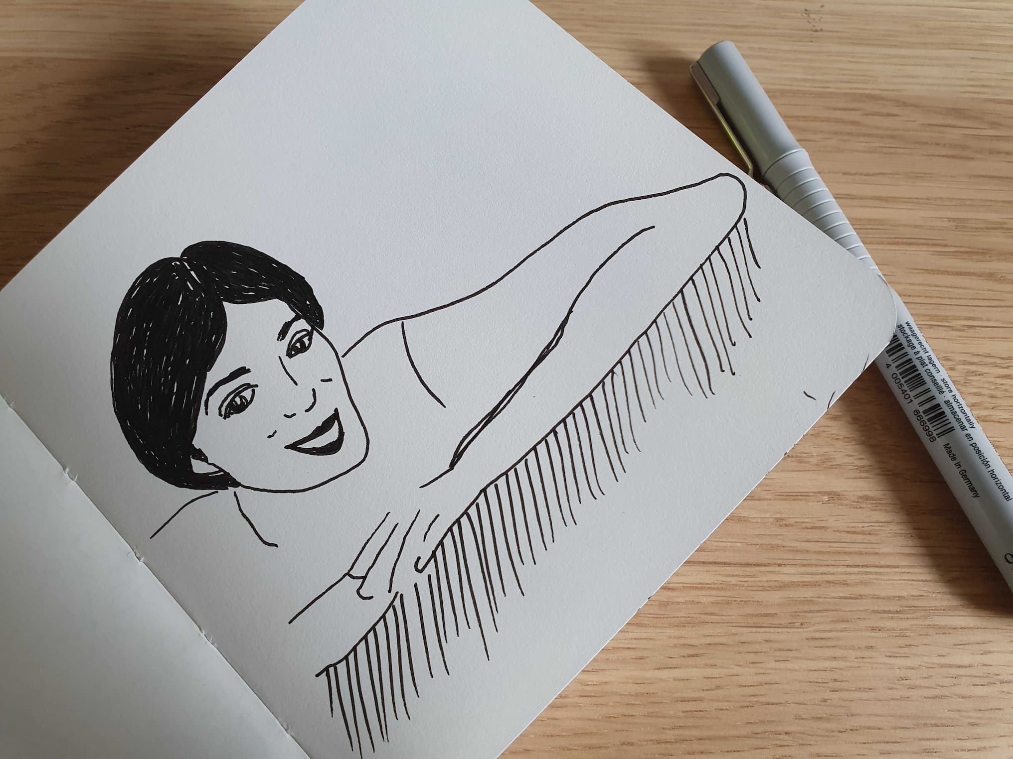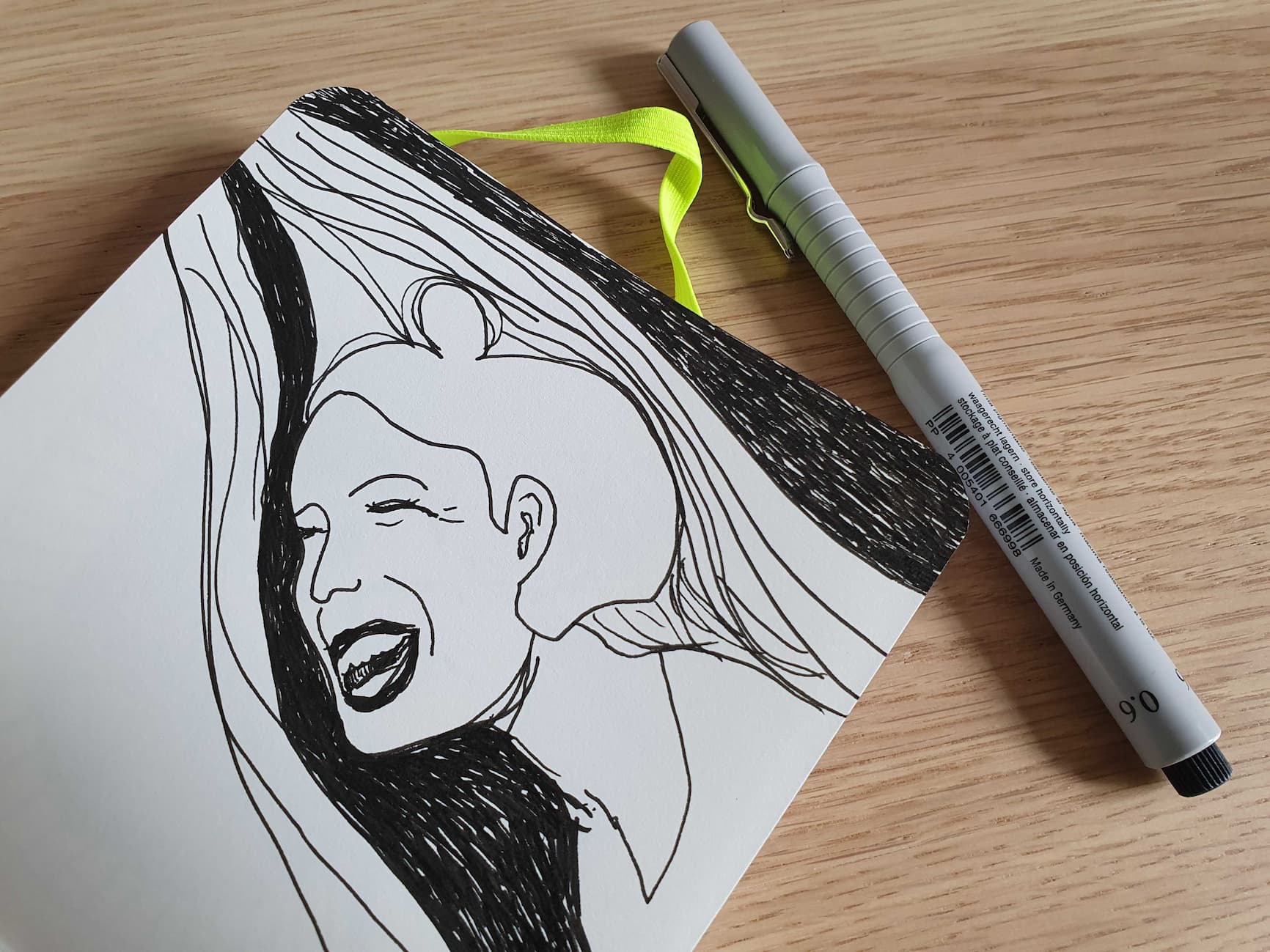 Ich kehre zurück zu einem uralten Thema aus meiner Teenagerzeit: Gesichter. Zum Teil suche ich mir Vorlagen online, um eine grobe Idee der Proportionen zu bekommen. Aber ich zeichne alles direkt mit dem Fineliner aufs Papier, ohne Vorzeichnen mit Bleistift.