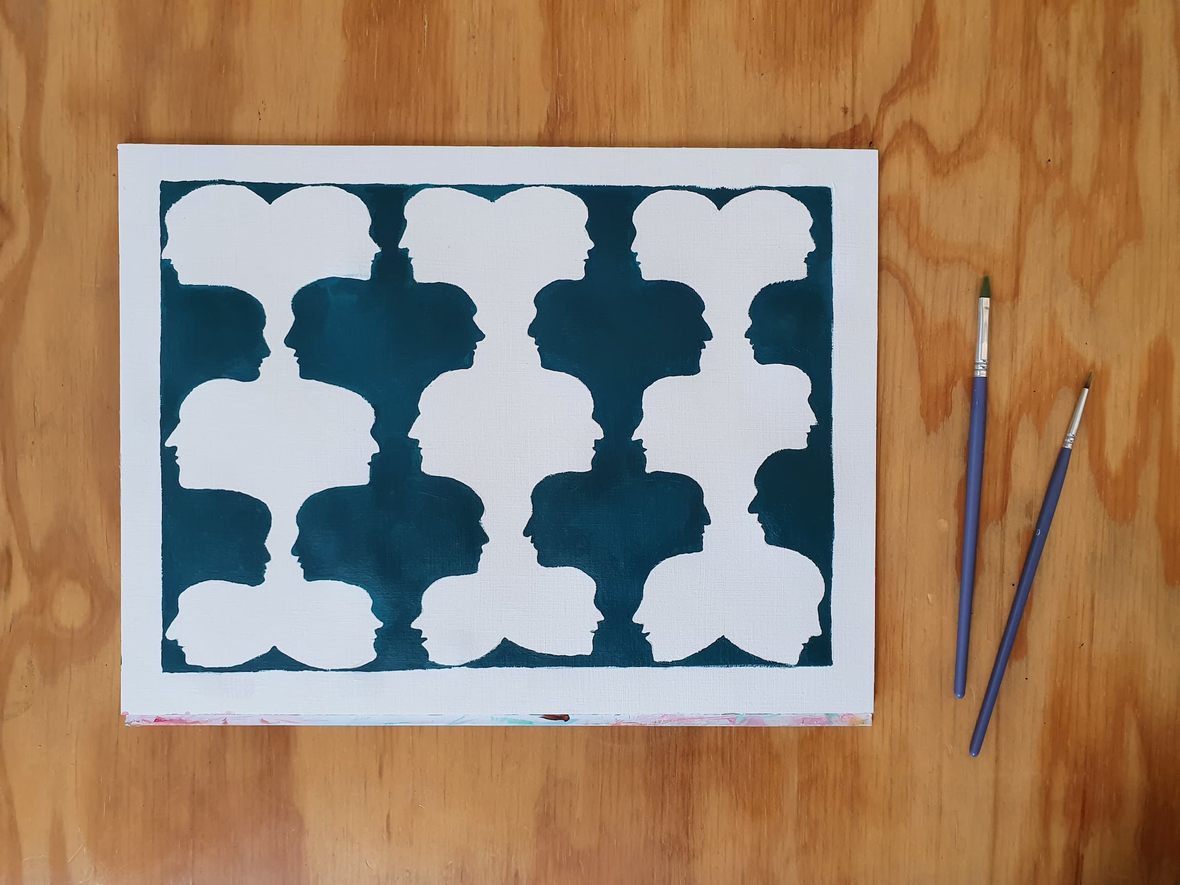 Nach unseren Herbstferien geht es für mich wieder im Atelier weiter. Diesmal setze ich das Thema “Verhänkt” in Acryl um. Ich mische mir dafür ein Petrolgrün, das leider auf dem Foto oben wie ein simples Dunkelblau aussieht. Etwa zwei Stunden lang male ich konzentriert mit meinem feinsten Pinsel.